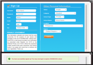 The Library has availed the first Digital Science Library in the Philippines by the Department of Science and Technology, which allows its users for information search for the materials they need. STARBOOKS contains thousands of digitized materials in various formats, including books, journals/serial publications, reference materials, theses and dissertations, technical and project reports, annual report, directories, and others including non-print materials acquired from local and international sources. Process of free registration online on DOST-STARBOOKS: